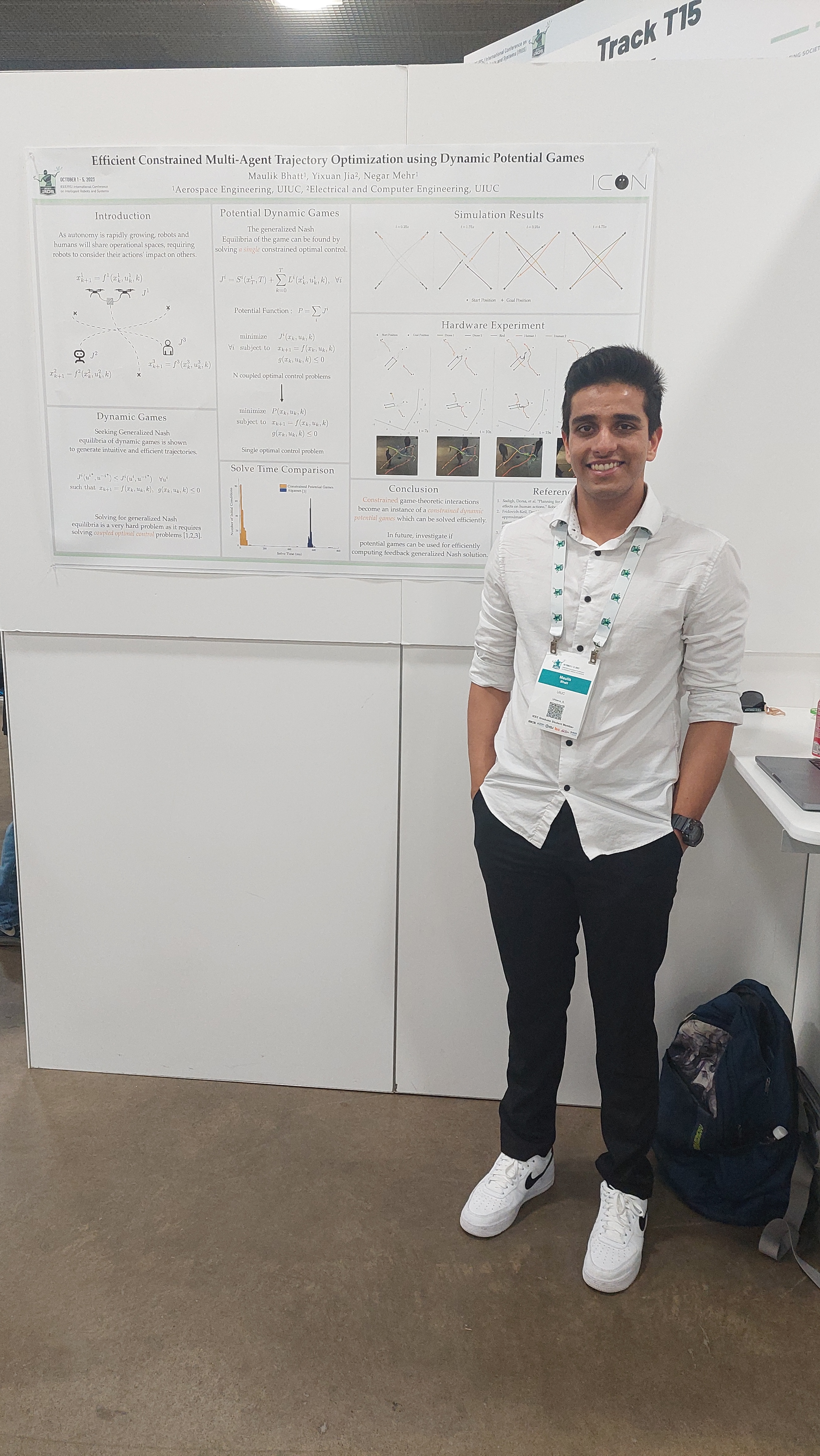 I am a Ph.D. student in the Department of Mechanical Engineering at UC Berkeley, where I am advised by Prof Negar Mehr. I am a part of the ICON lab. I started my Ph.D. at UIUC as a part of the Coordinated Science Laboratory. Later, I moved to UC Berkeley with my advisor, Prof Negar Mehr, starting in January 2024.
